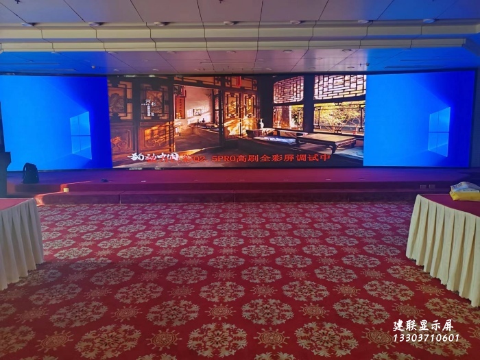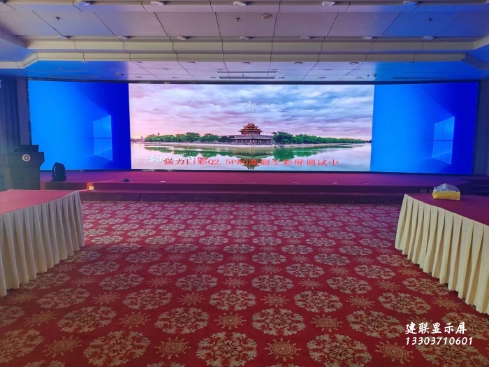 近日,鄭州某會議室主席臺安裝了一塊有鄭州LED顯示屏廠家河南建聯(lián)電子設(shè)計的強力巨彩Q2.5PRO顯示屏,一主屏兩個副屏,共計42平方。