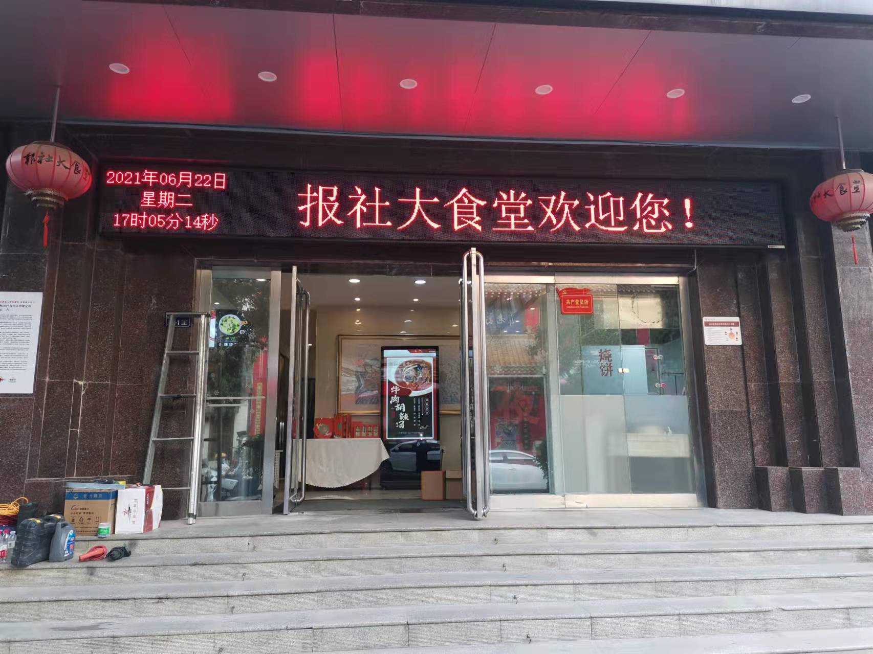 LED顯示屏安裝地點(diǎn):河南日?qǐng)?bào)報(bào)業(yè)大廈食堂門(mén)口