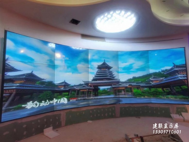 鄭州拼接屏廠家3.5mm弧形售樓大廳廣告屏