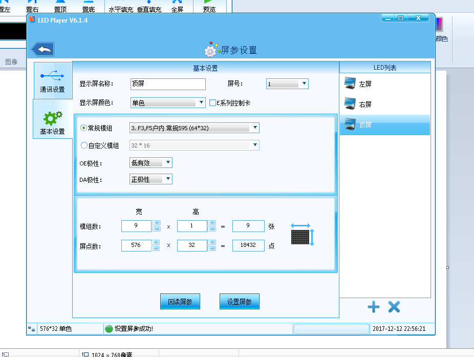 寬度改為17塊 高度1塊 點(diǎn)設(shè)置屏參就可以了 河南LED顯示屏如何修改IP地址 ? 返回第一張圖,點(diǎn)下端的搜索,搜到控制卡后雙擊打開(kāi) 修改IP 然后關(guān)閉所有設(shè)置對(duì)話框,最后再用字幕或者文本編輯內(nèi)容,最后點(diǎn)右上角發(fā)送即可.