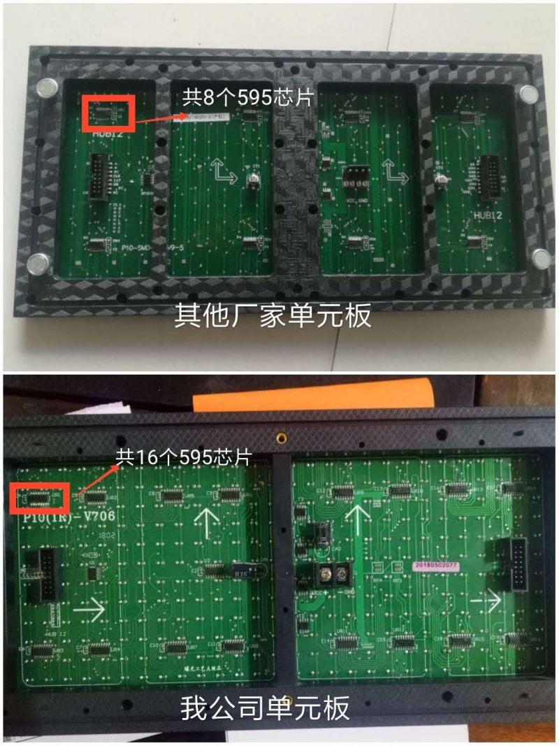 我公司單色顯示屏,采用單色屏最初設計的燈珠屏,并且線路板上595芯片與現(xiàn)在常規(guī)標貼單色單元板多出一倍,亮度更高,穩(wěn)定性更強。