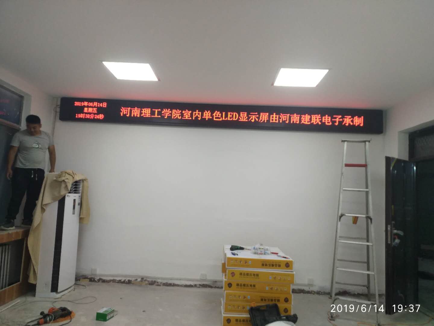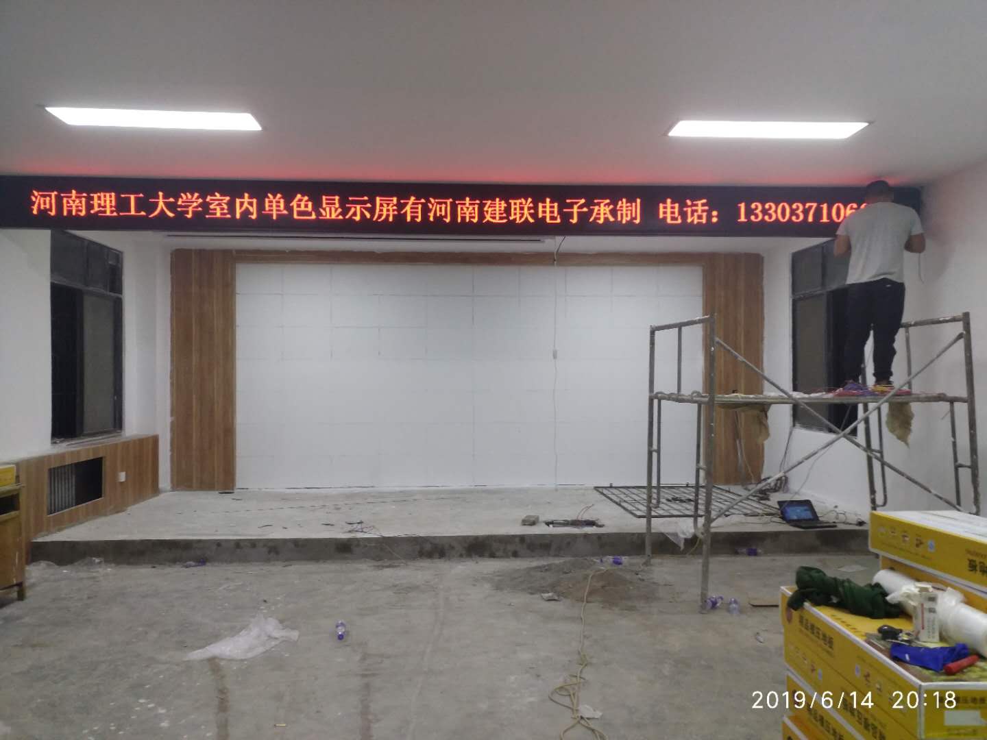 近日,位于焦作的河南理工大學(xué)會(huì)議室安裝了兩塊有河南建聯(lián)電子制作的LED顯示屏,此會(huì)議室焦作LED顯示屏采用室內(nèi)P4.75單色單元板,密度G,穩(wěn)定性Q,深受學(xué)校領(lǐng)導(dǎo)的肯定。